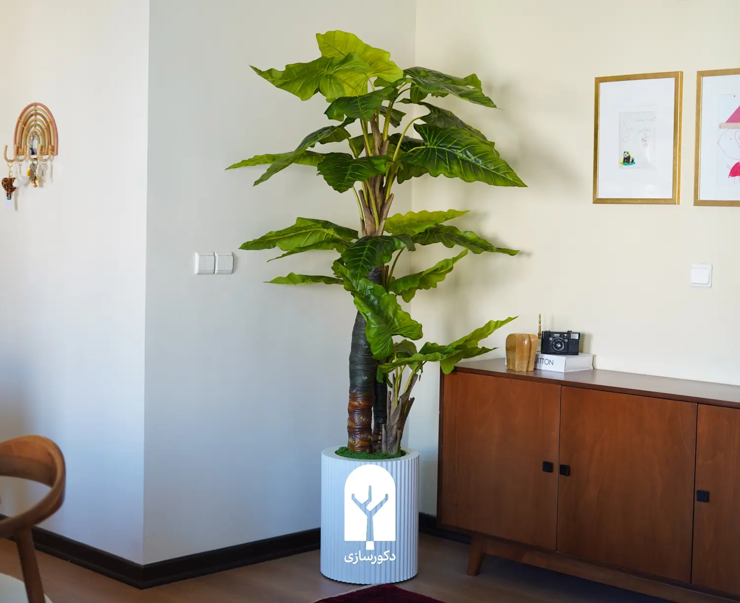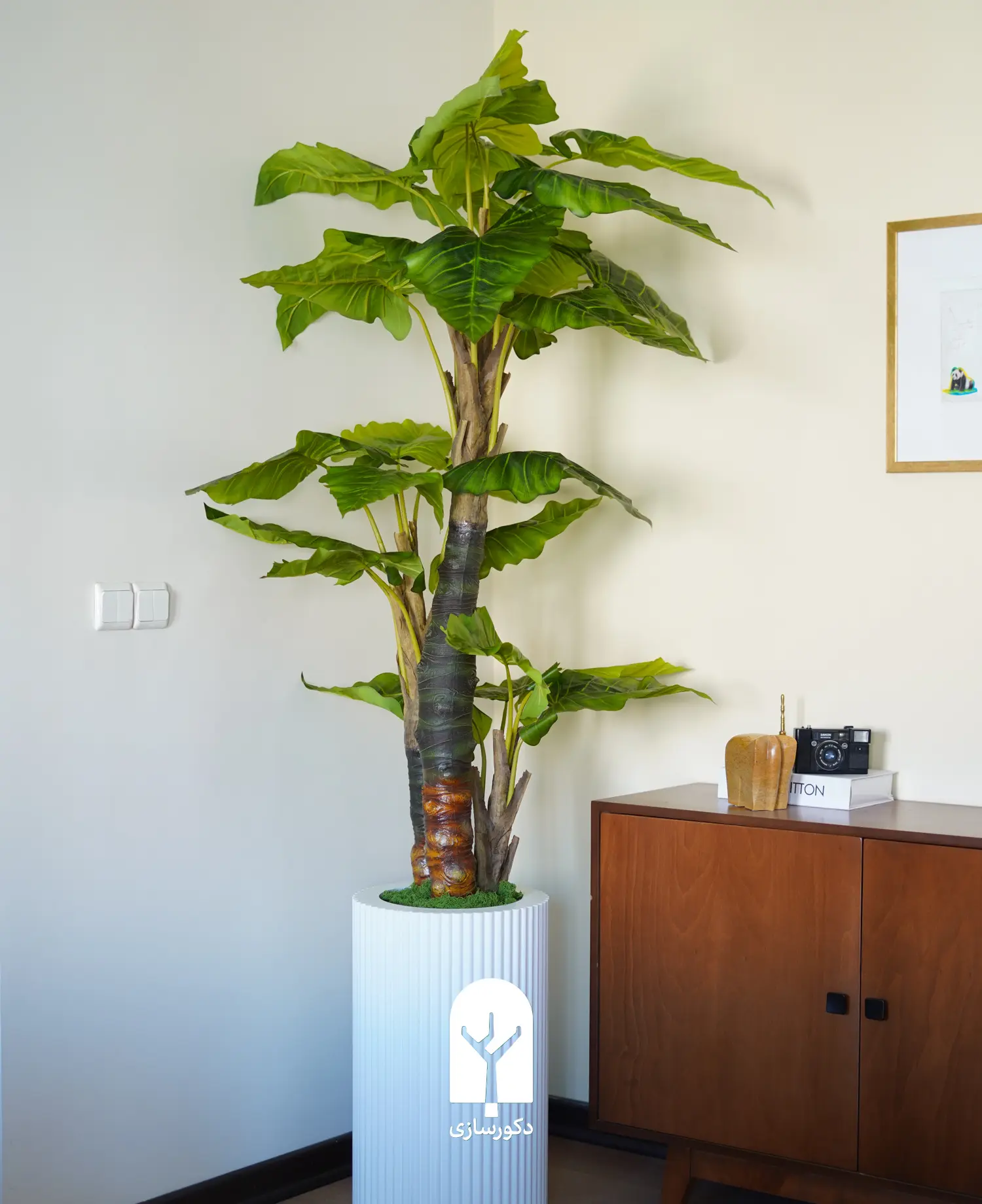 بابا آدم تنه سبز مصنوعی به دلیل قامت ایستاده و برگهای پهن، میتواند بهعنوان یک المان اصلی در دکوراسیون استفاده شود. این گیاه بهخوبی فضاهای خالی را پر میکند و به محیط جلوهای زنده و پرانرژی میبخشد. ترکیب آن با گلدان های شیک یا قرار دادن در کنار مبلمان مدرن، زیبایی فضا را چند برابر میکند.