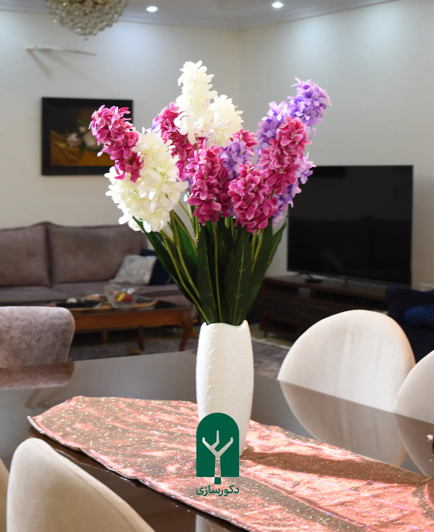 گلدان رومیزی سنبل مصنوعی با گلدان سرامیکی سفید، انتخابی ایدهآل برای تزئین میز و فضاهای کوچک. این محصول در چهار رنگ جذاب سفید، بنفش، صورتی و سهرنگ عرضه میشود و با ظاهر طبیعی و شاداب خود، زیبایی دائمی به دکوراسیون میبخشد.